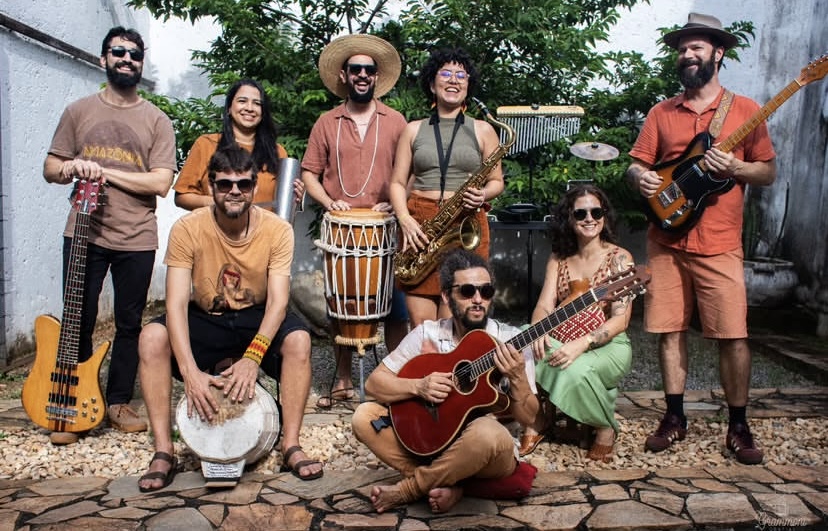 Tácio – Eu acho que é um som que te dá inúmeras possibilidades, seja do transe, seja da dança, seja da viagem, seja do bate-cabeça. É um som que traz elementos muito essenciais a nós: a percussividade brasileira, traz a psicodelia, traz o ritmo, o movimento dos pezinhos. Então é um som que te permite curtir de diversas formas. E todas as formas que te permitem curtir são muito vibrantes e animadas.